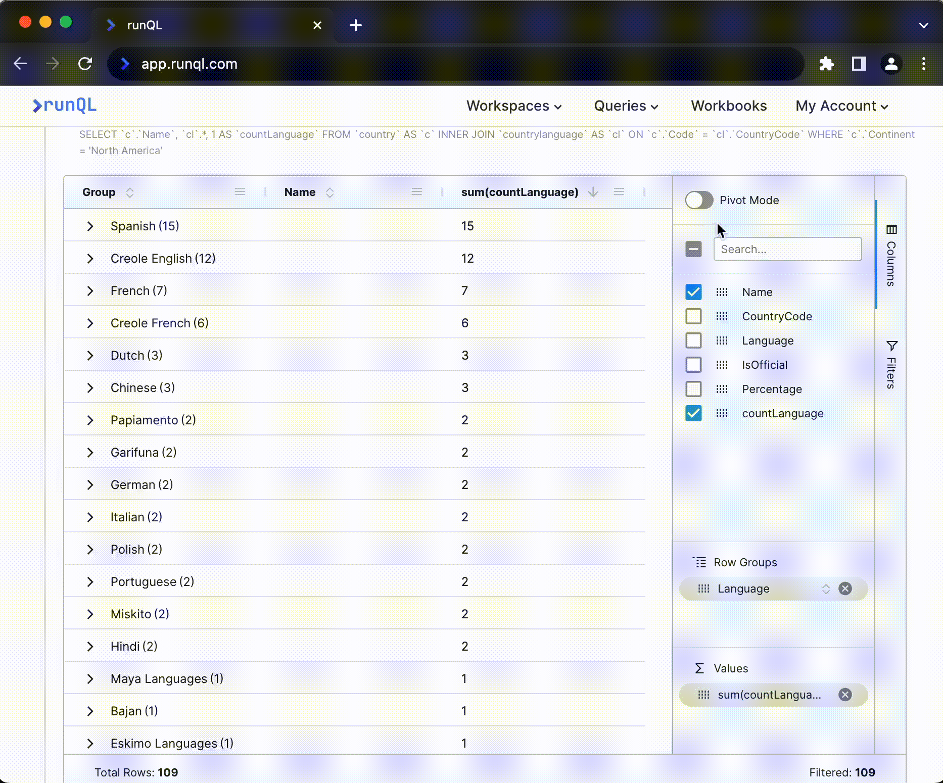No need to download to Sheets or MS Excel. Did you know you can group and pivot right inside runQL?
