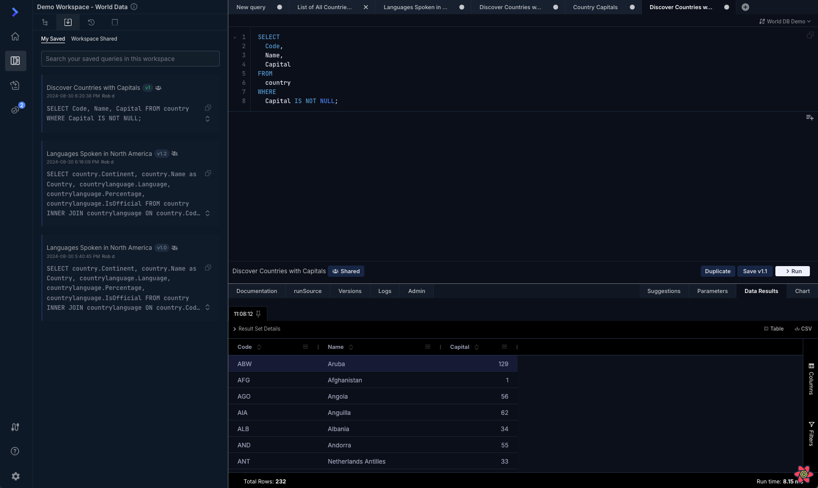 New organizations in runQL now get more demo queries and workflows to test against the demo database.