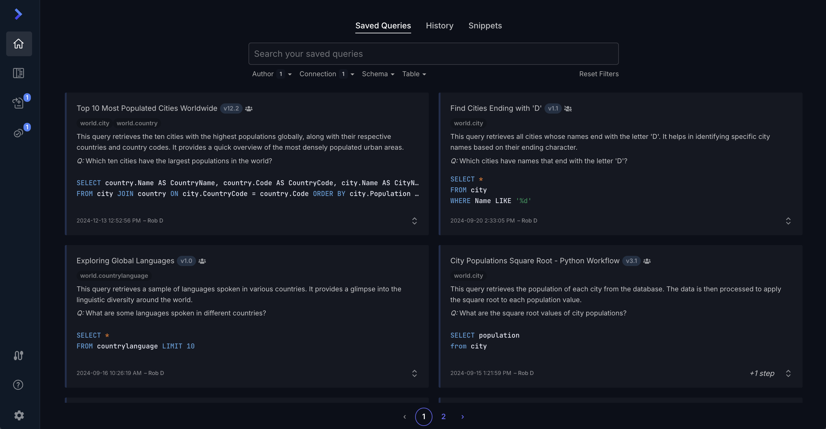 We've redesigned the query cards for better visibility with syntax highlighting and more info at a glance to quickly find and reuse your queries.