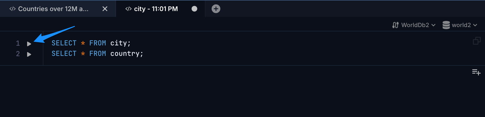 Working on multiple statements in one query cell? Run just the one you need, without touching the rest.
