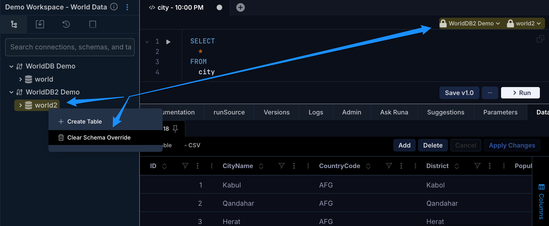 Need to run the same query across Dev, Staging, and Production? You can now switch the target schemas for queries with one click.