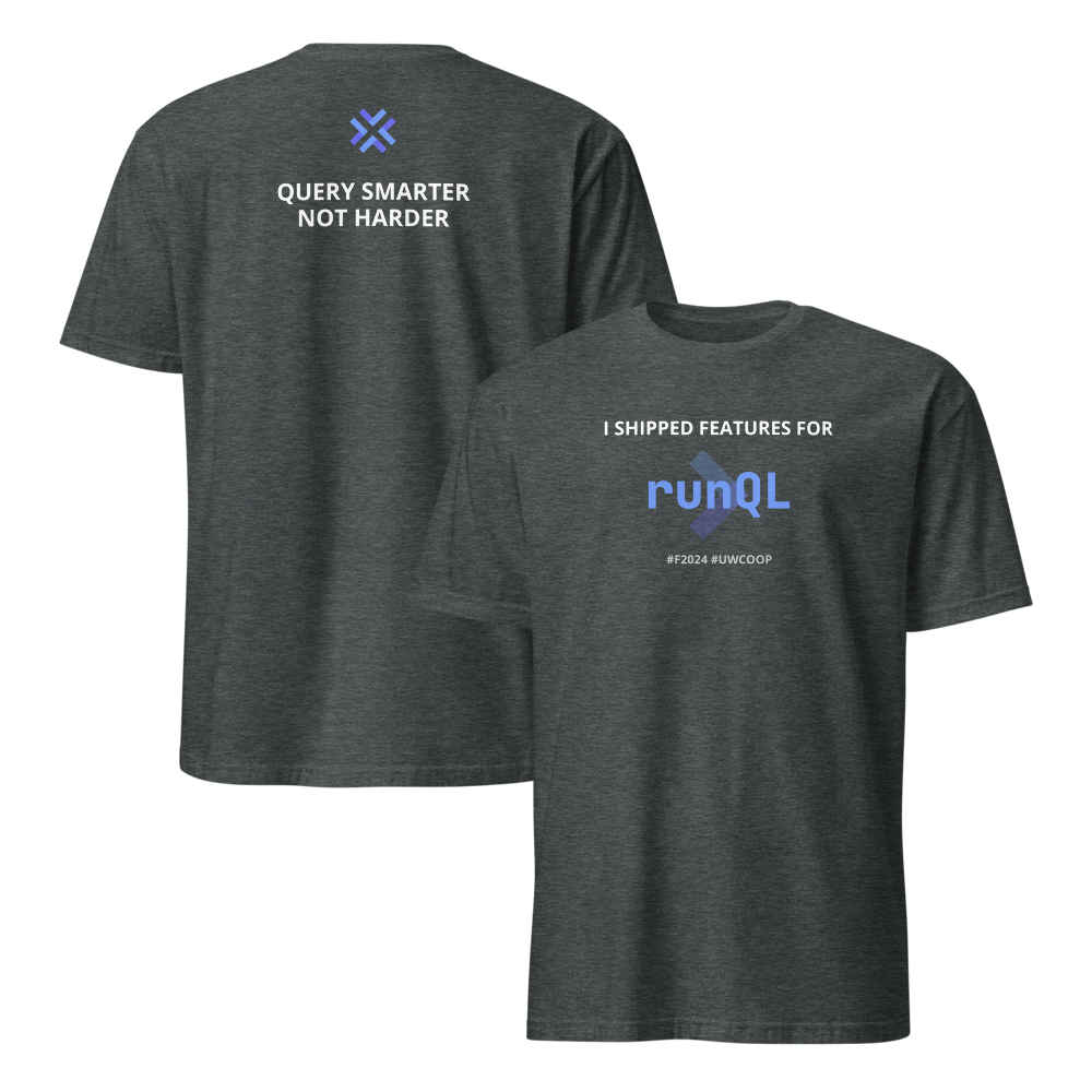 Elai and Eric have been busy shipping features you’re already using and brand-new ones too—so we got them these limited-edition runQL shirts as their back to school gift. Well deserved!